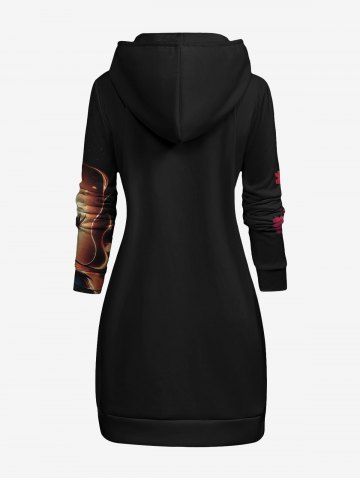 Plus Size Dragon Branch Floral Print Pocket Drawstring Pullover Long Sleeves Hoodie - Black - 3xl
