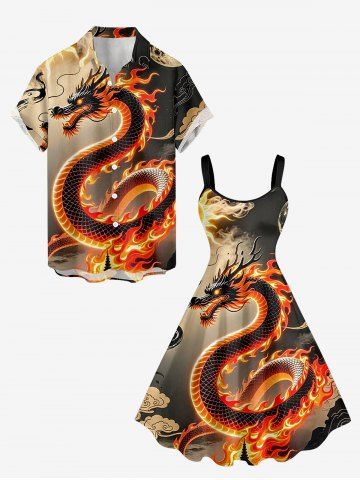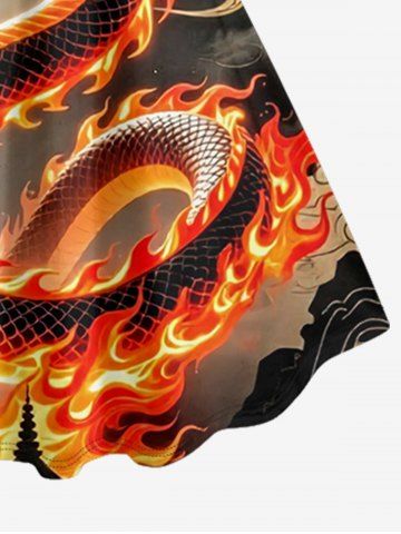 Graphic Dresses > Plus Size Dragon Fire Flame Print A Line Dress
