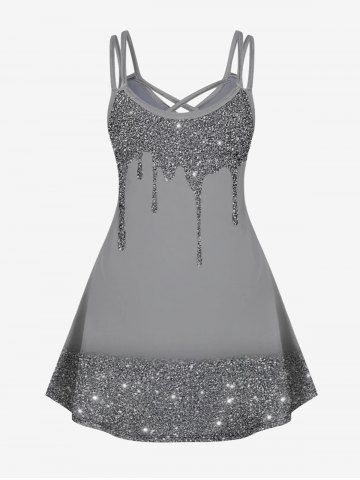 Plus Size Dual Straps Sparkling Print Crisscross Detail Cami Dress - Gray - 4x | Us 26-28