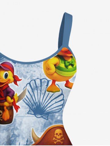Plus Size Duck Pirate Sailboat Shell Parrot Print Hawaii Cruise A Line Dress - Powder Blue - 5x