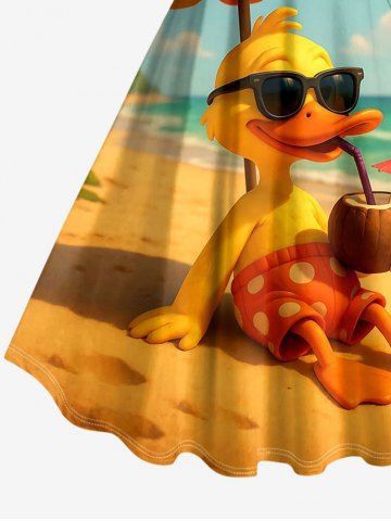 Graphic Dresses > Plus Size Duck Sea Beach Print Hawaii A Line Dress