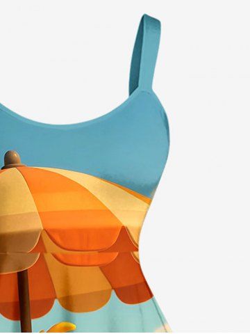 Plus Size Duck Sea Beach Print Hawaii A Line Dress - Yellow - 5x