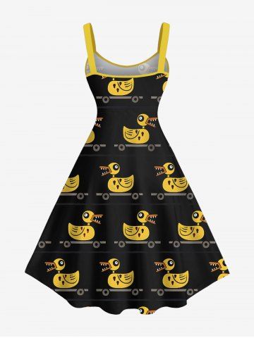 Plus Size Duck Skateboard Print Hawaii A Line Tank Dress - Black - 4x