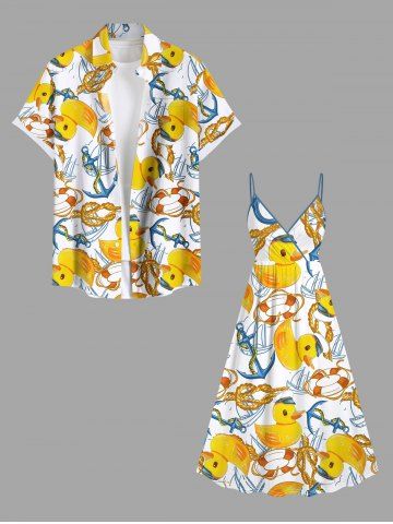 Plus Size Duck Swimming Ring Anchor Sailboat Print Hawaii Cruise Surplice A Line Cami Dress - Yellow - Xs