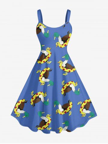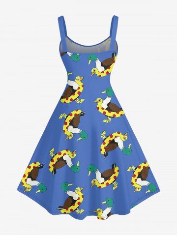 Plus Size Duck Swimming Ring Print Hawaii A Line Dress - Blue - Xs