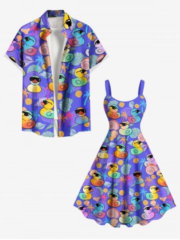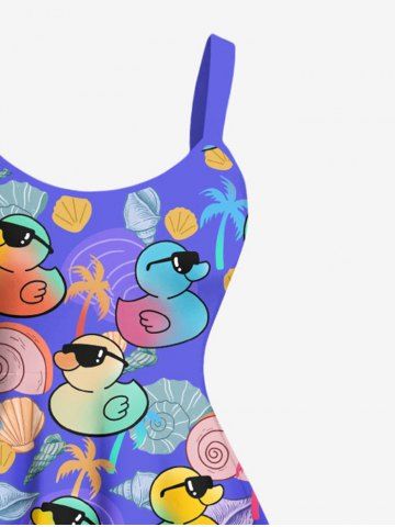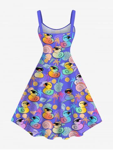 Plus Size Ducks Coconut Tree Shell Print Hawaii Tank Dress - Purple - 4x