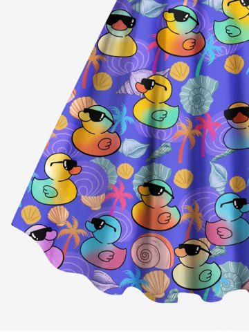 Plus Size Ducks Coconut Tree Shell Print Hawaii Tank Dress - Purple - 6x