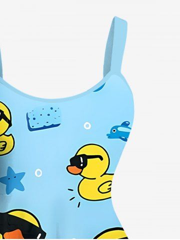 Plus Size Ducks Fish Star Print Hawaii Tank Dress - Sky Blue - L