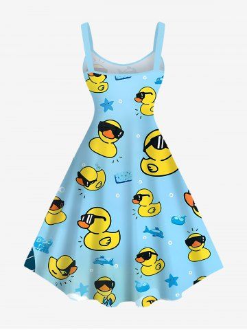 Plus Size Ducks Fish Star Print Hawaii Tank Dress - Sky Blue - 1x