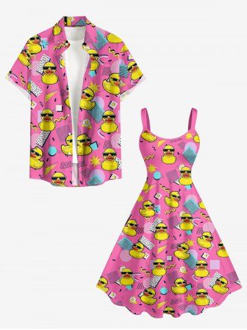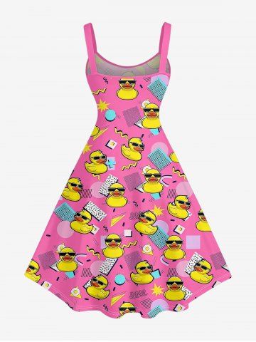 Plus Size Ducks Geometric Pattern Print Hawaii Tank Dress - Light Pink - S