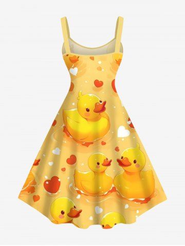 Plus Size Ducks Heart Print Hawaii Tank Dress - Yellow - 2x