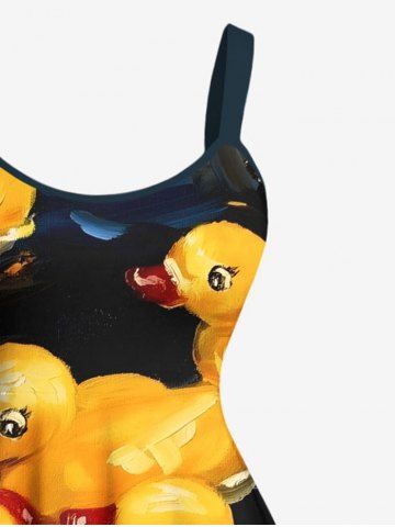 Plus Size Ducks Oil Painting Print Hawaii Tank Dress - Yellow - 6x