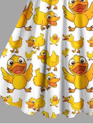 Plus Size Ducks Print Hawaii Tank Dress - Yellow - 5x
