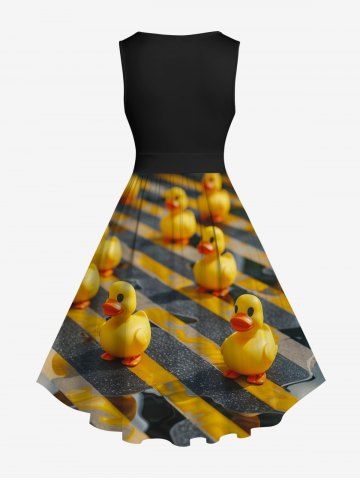 Plus Size Ducks Road Print 1950s Vintage Hawaii Dress - Black - 6x
