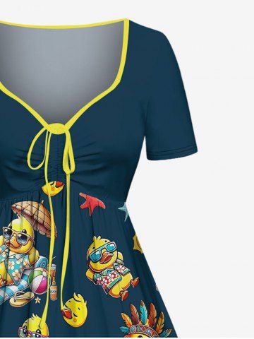 Graphic Dresses > Plus Size Ducks Swimming Ring Starfish Sun Print Cinched Hawaii Dress