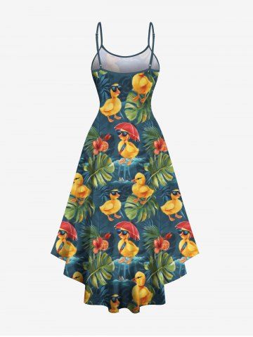 Plus Size Ducks Tropical Leaf Hibiscus Flowers Print High Low Hawaii Cami Dress - Green - S