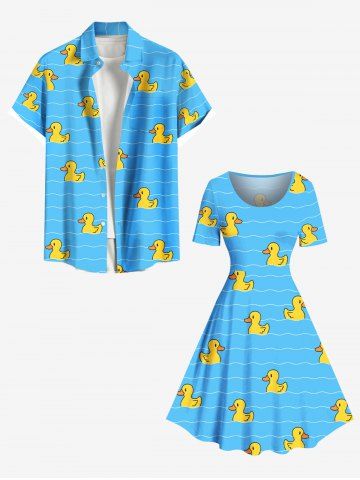 Plus Size Ducks Wave Line Print Vintage Hawaii Dress - Sky Blue - 3x