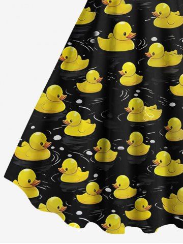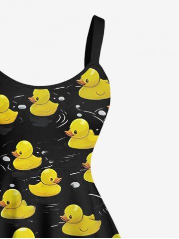 Plus Size Ducks Waves Print Hawaii Tank Dress - Black - 5x