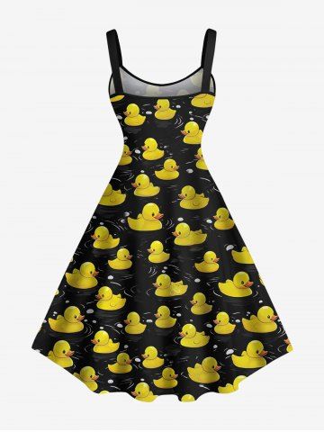 Plus Size Ducks Waves Print Hawaii Tank Dress - Black - 6x