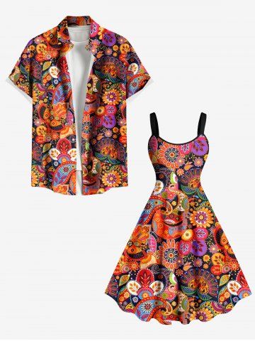 Graphic Dresses > Plus Size Ethnic Colorful Flowers Paisley Owl Print Hawaii Tank Dress