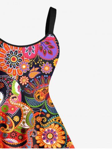 Plus Size Ethnic Colorful Flowers Paisley Owl Print Hawaii Tank Dress - Red - 5x