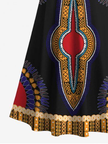Plus Size Ethnic Geometric Pattern Print Cold Shoulder Crisscross Hawaii Maxi Dress - Black - Xs