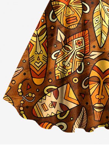 Plus Size Ethnic Graphic Mask Print Hawaii A Line Dress - Brown - 4x