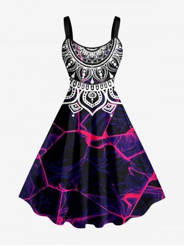 Graphic Dresses > Plus Size Ethnic Graphic Tie Dye Print Hawaii A Line Dress