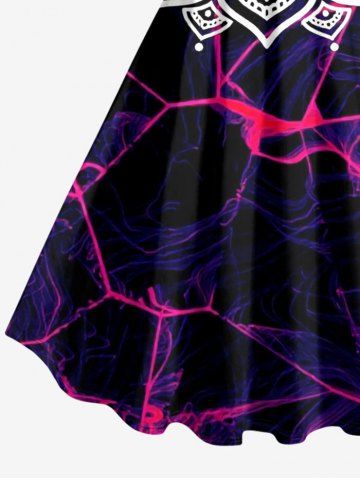 Plus Size Ethnic Graphic Tie Dye Print Hawaii A Line Dress - Concord - S