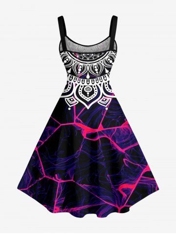 Graphic Dresses > Plus Size Ethnic Graphic Tie Dye Print Hawaii A Line Dress