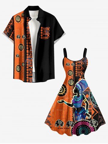 Plus Size Ethnic Lady Elephant Pattern Print Hawaii Tank Dress - Orange - Xxs