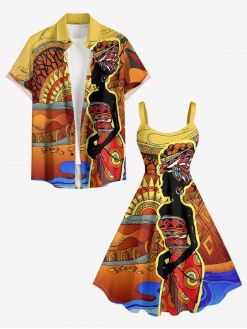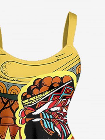 Plus Size Ethnic Lady Sun Print Hawaii Tank Dress - Orange - 3x