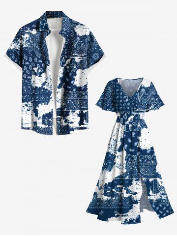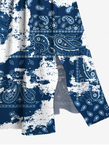 Plus Size Ethnic Paisley Mottled Print Hawaii Split Pocket A Line Midi Dress - Blue - M