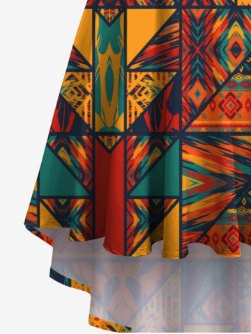 Plus Size Ethnic Pattern Scarf Print High Low Hawaii Cami Dress - Dark Orange - Xxs