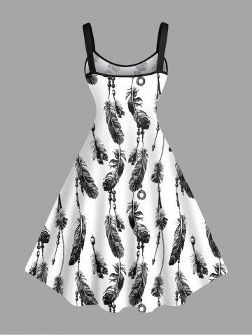 Plus Size Feather Tassel Print Hawaii A Line Tank Dress - White - 2x
