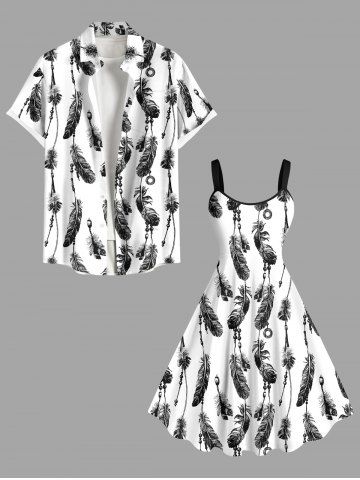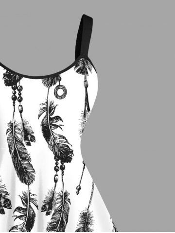 Plus Size Feather Tassel Print Hawaii A Line Tank Dress - White - 5x