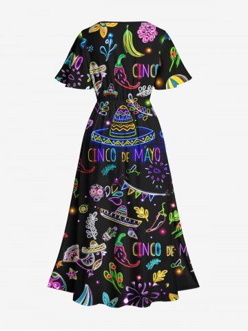 Plus Size Fish Plant Straw Hat Vegetable Floral Skull Print Split Hawaii Midi Dress - Black - 2x