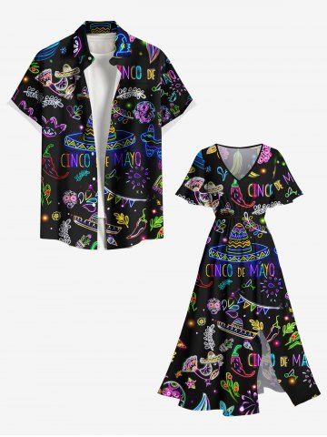 Plus Size Fish Plant Straw Hat Vegetable Floral Skull Print Split Hawaii Midi Dress - Black - 4x