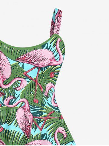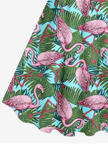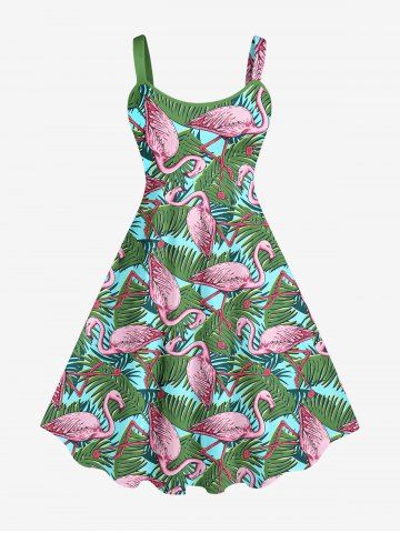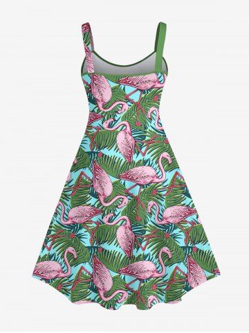 Plus Size Flamingo Coconut Leaves Print Hawaii Backless A Line Tank Dress - Green - 1x