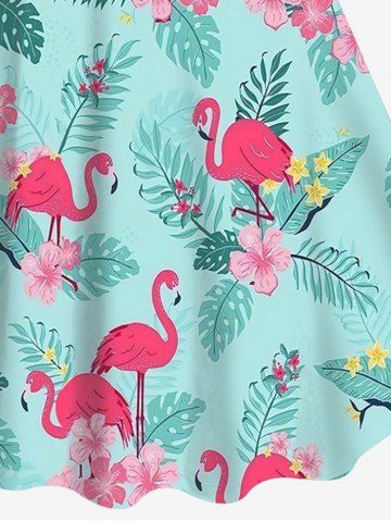 Graphic Dresses > Plus Size Flamingo Coconut Tree Leaf Floral Print Vintage Hawaii A Line Dress