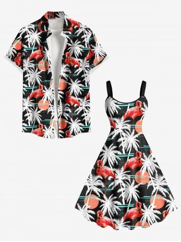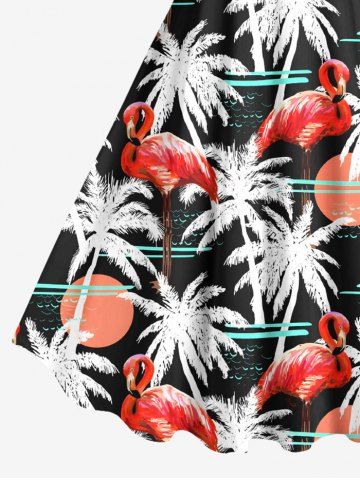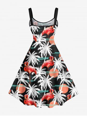 Plus Size Flamingo Coconut Tree Sun Print Hawaii Tank Dress - Black - 6x