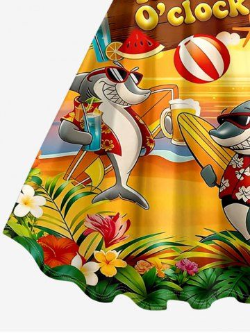 Plus Size Flamingo Coconut Tree Umbrella Starfish Print Hawaii Tank Dress - Yellow - Xs