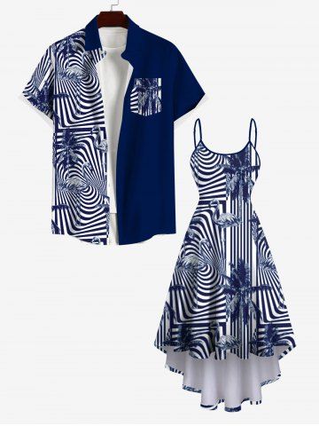 Plus Size Flamingo Coconut Tree Zebra Striped Printed Hawaii High Low Asymmetric A Line Cami Dress - Blue - S