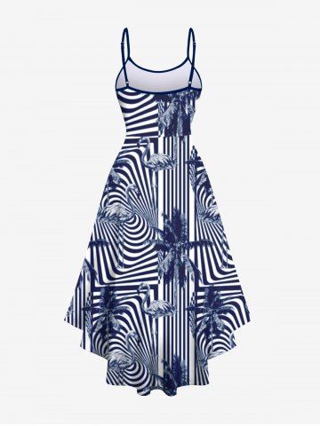 Plus Size Flamingo Coconut Tree Zebra Striped Printed Hawaii High Low Asymmetric A Line Cami Dress - Blue - 6x