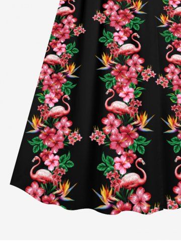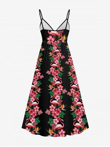 Graphic Dresses > Plus Size Flamingo Floral Tropical Leaves Print Hawaii Surplice A Line Cami Dress