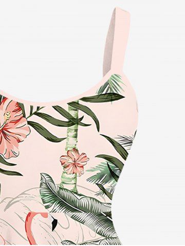 Plus Size Flamingo Hibiscus Flowers Tropical Leaf Coconut Tree Print Hawaii Tank Dress - Light Pink - M