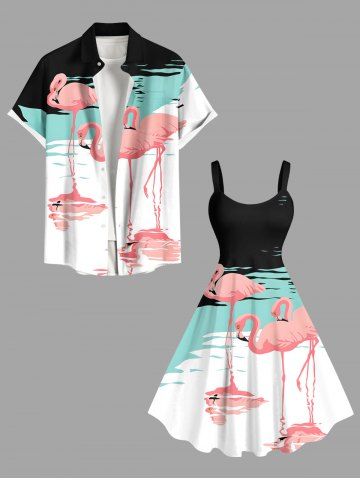 Graphic Dresses > Plus Size Flamingo Lake Print Hawaii A Line Tank Dress