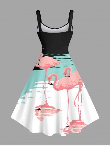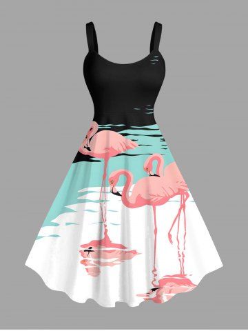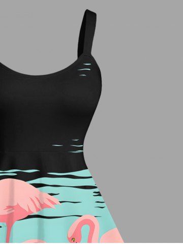 Plus Size Flamingo Lake Print Hawaii A Line Tank Dress - Black - 3x