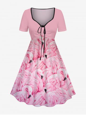 j*****e5Plus Size Flamingo Print Cinched Hawaii DressColor: LIGHT PINK Size: 4XTrue to size. Fits great. Love the print and the material. A cool outfit.