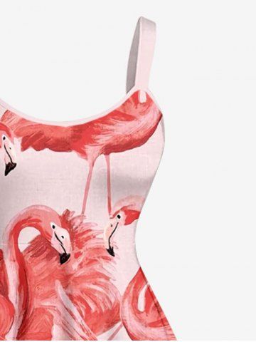 Plus Size Flamingo Print Hawaii A Line Dress - Red - 3x